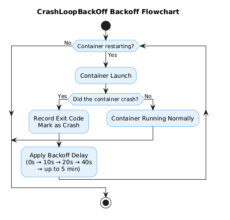 - Subsequent restarts: Exponentially increasing delays (20s, 40s, 80s, etc.)
